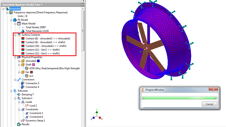 - Add To FE Model: Surface contacts generated this way can be applied to an analysis by clicking the Add to FE Model checkbox. This can also be done by dragging them onto FE Model, or by right-clicking FE Model, selecting Edit, and then picking the surface contact from the list under the Surface Contacts section.