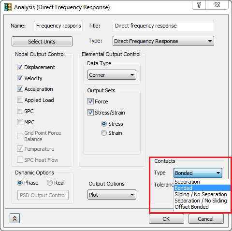 - If the analysis types are not nonlinear, the contact type will default to welded.