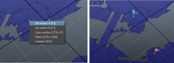 Note that you can easily retrieve the start and end points for the query from the Navigation Lab. At the bottom of the main window, the Navigation Lab lists the positions of the A and B markers in 3D space (expressed in the Navigation coordinate system). Click the Copy buttons to copy these values to the clipboard.