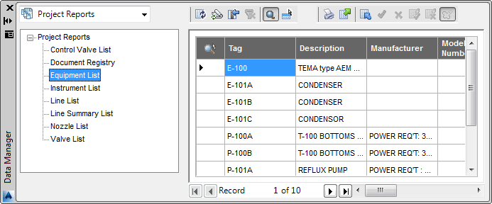 • In the Data Manager, in the drop-down list, click Project Reports.