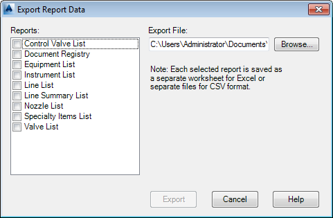 The Export button only becomes active when you select one or more report types and have specified an export file.