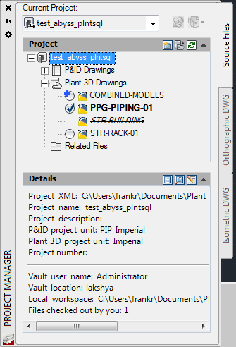 Shown above the file combined-models is being checked-out. combined-models references (XREF) str-rack-01, ppg-piping-01, and str-building. Therefore all files are downloaded.