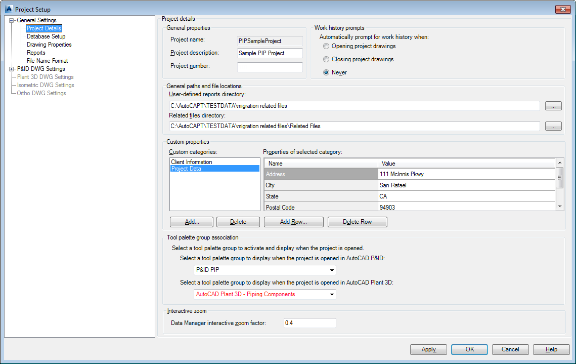 Configures project and drafting preferences, such as component symbology, tagging rules, annotation properties, layers, and colors.