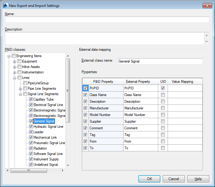 Modifies the name, description, selections and mappings for P&ID objects and properties.