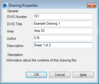 - Under Description, enter a description (for example: The project to which this drawing belongs).