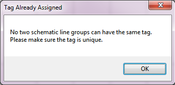 No two different schematic line groups can have the same tag because the tag identifies the group. This can prevent you from assigning an existing line number to a line segment.
