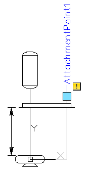 Attachment points are required to specify, label, and correctly apply end connections. They are used in components such as pumps and blowers to determine that the connections in a drawing represent the available connections on the real-world items. Inline components such as valves have attachment points that provide precise control over line connections. When you place an inline component on a schematic line, its attachment points ensure that the schematic line is properly broken.