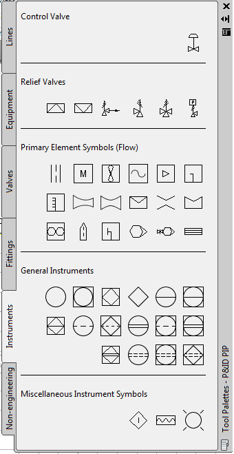 You add instruments as you would any other item. They are associated with a specific layer and color. You can substitute the control valve or topworks after adding an instrument to a drawing.