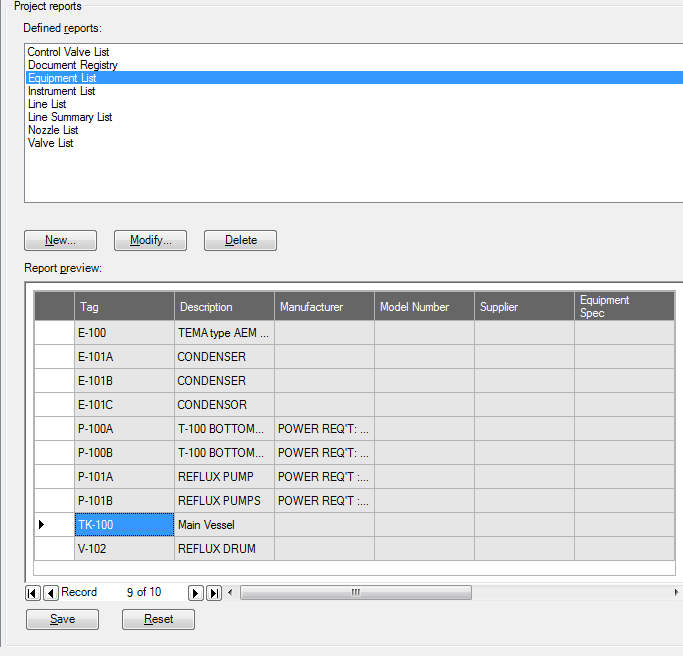 Displays the Modify Report dialog box, where you can modify existing reports.
