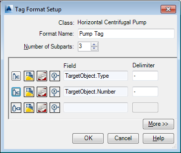 Selects the number of subparts for the tag format. Click the Up or Down arrow to add or subtract the number of subparts.