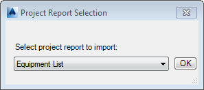 - If you are importing XLS data at the Project Reports level, the Project Report Selection dialog box is displayed. In the Select Project Report to Import list, select the report you want to import. Click OK.