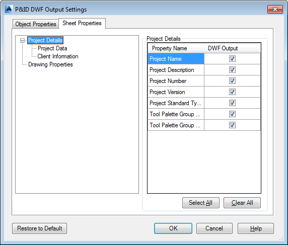 By default, all the properties of the “Project Details” and “Drawing Properties” categories are included.
