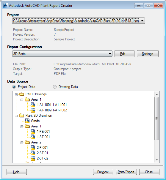 • Under Data Source, click Project Data or Drawing Data, depending on your needs. If you click Drawing Data, you must also select the drawing or drawings you want represented.