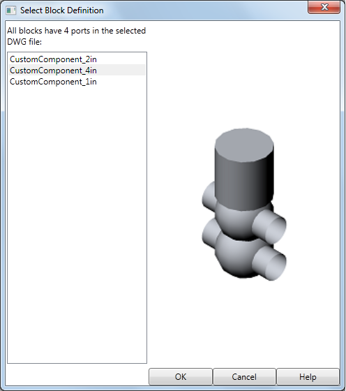 Specify a block in a drawing that has port information added using PLANTPARTCONVERT.