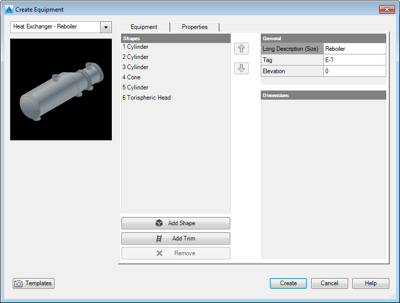 RemoveRemoves equipment parts in the Shapes section of this dialog box.
