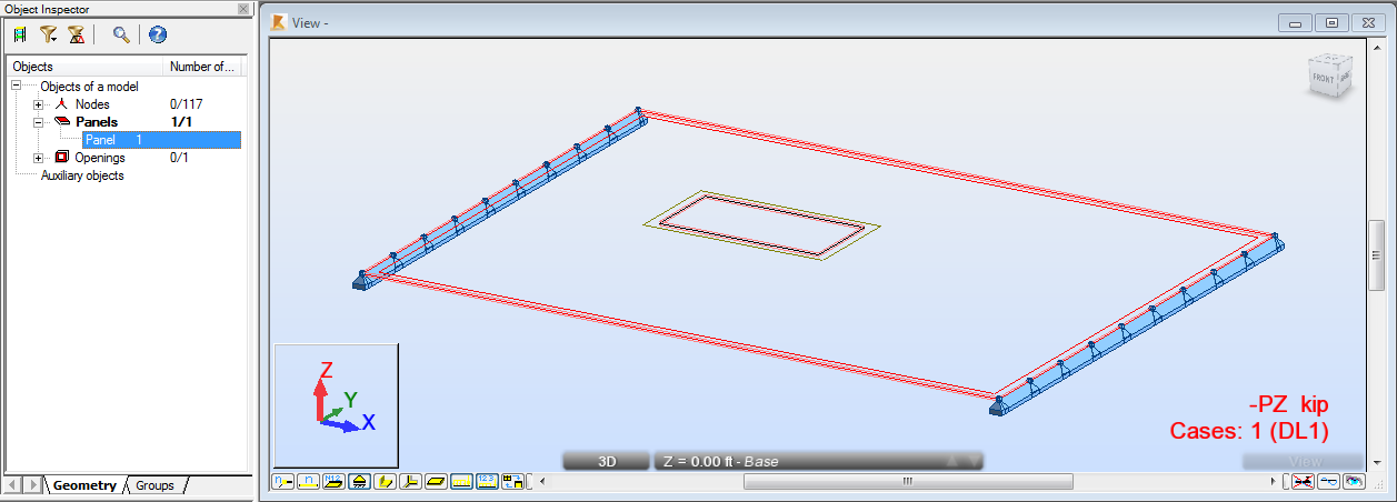 The bottom provided reinforcement area for the X direction displays in the view. To view the reinforcement for other directions, in the top left corner of the screen select another tab e.g. Y-.