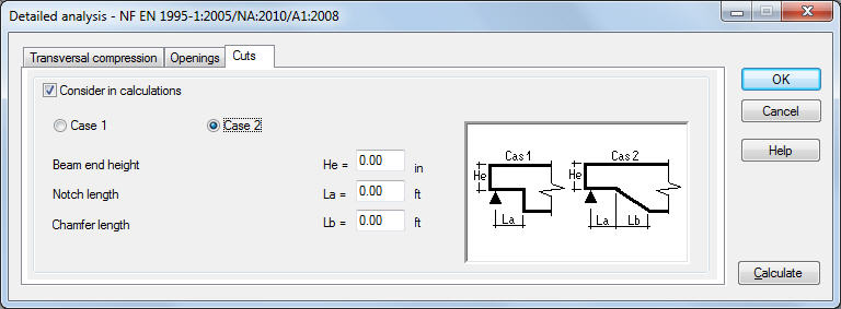 The program makes it possible to run additional calculations based on the requirements described in the code NF EN 1995-1:2005/NA:2010/A1:2008: