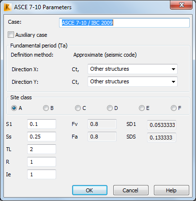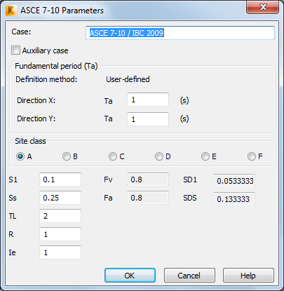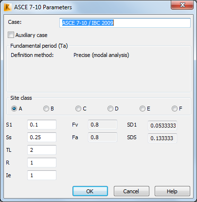 Parameters of the seismic simplified analysis according to the equivalent lateral force method depend on a seismic code and a method of defining values of the fundamental periods selected in the Seismic Analysis dialog.