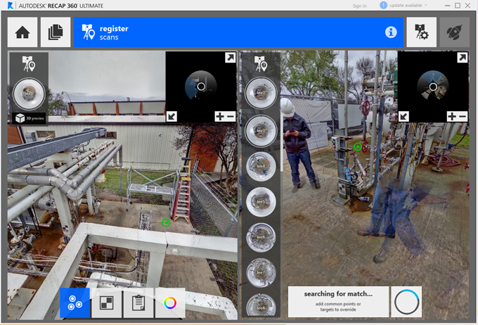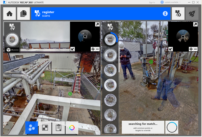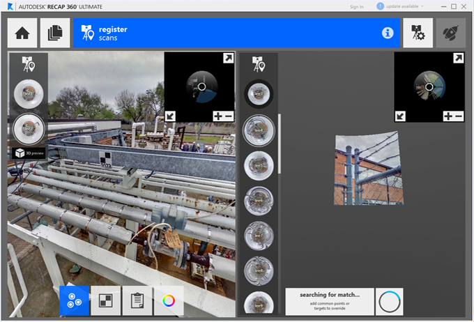 Registration can be completed through the cloud to cloud technique whenever auto registration fails or in place of it. The tool can be accessed during the registration process from the bottom tool bar.