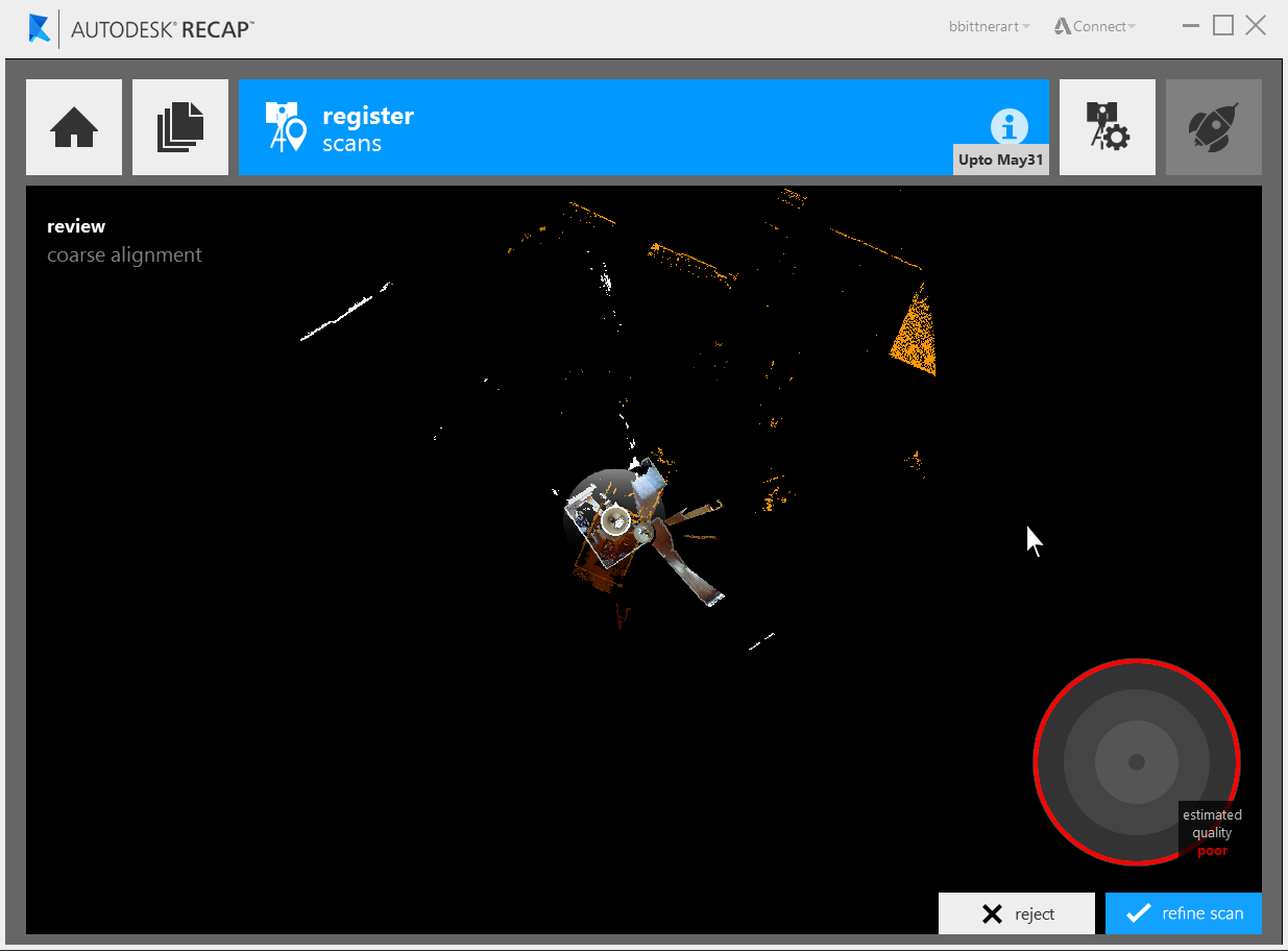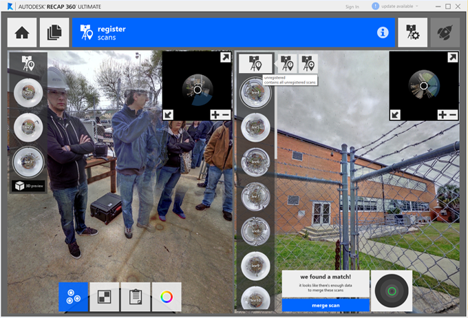 If registration completes correctly the scan will automatically merge into the main scan group.