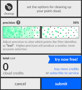 Precision is designed to mitigate this issue and return a better overall result. By using the easily identified "bad" points as a guideline the tool expands its selection to include additional points within a certain radius of any given "bad" point. Lower precision selects a larger region around the "bad" points resulting in more points being selected, while higher precision selects a smaller region resulting in fewer.