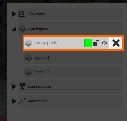 These points can be deleted from the project through the Scan Region's contextual tools.