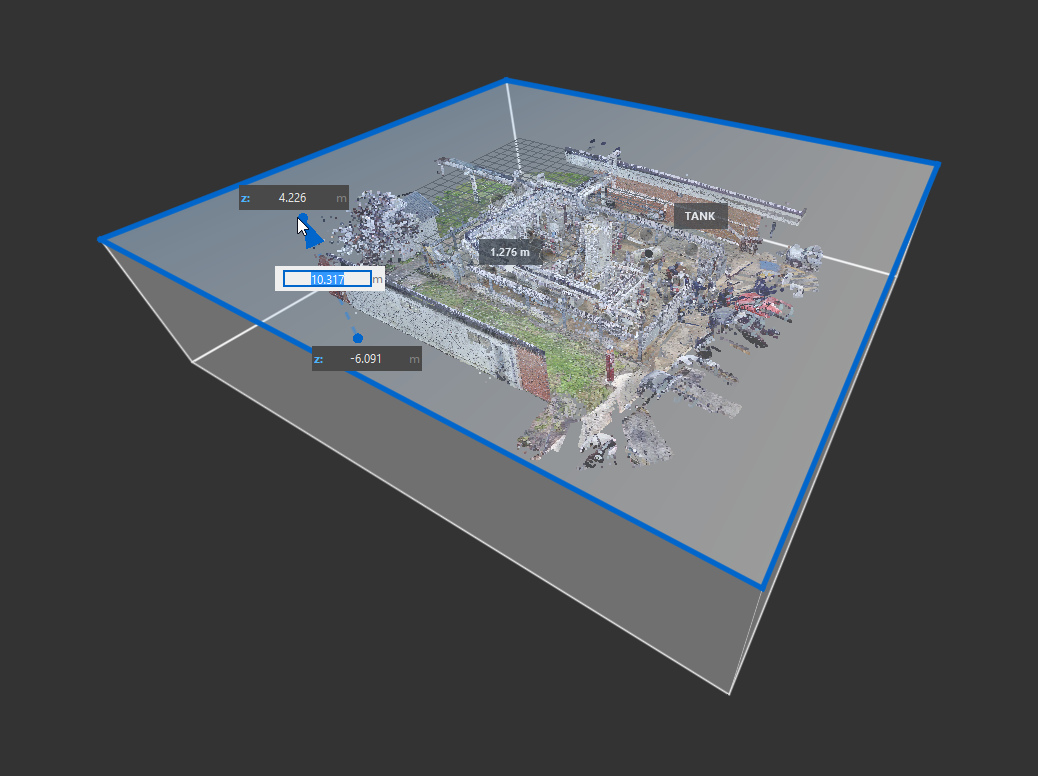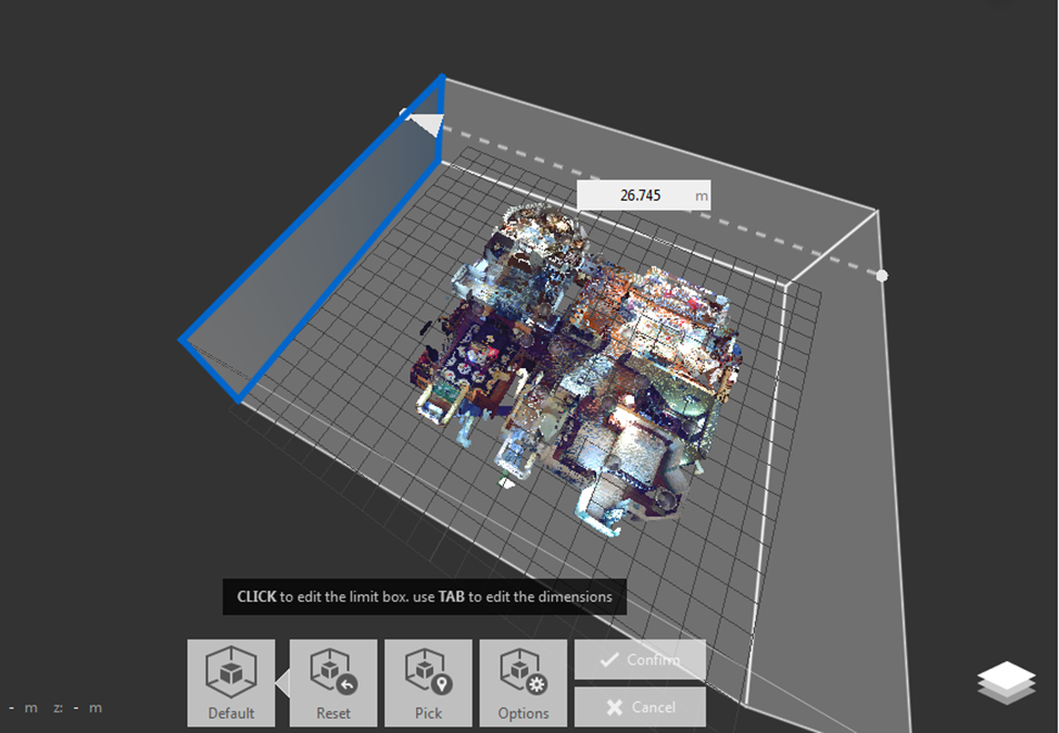 You can quickly adjust the limit box that coincides with the portion of the point cloud that is currently visible. This is a quick way to create a small limit box that focuses on a specific feature.