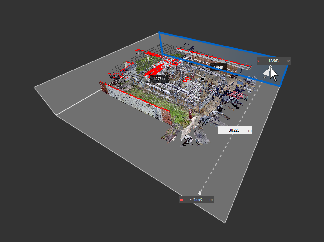 You will mostly be utilizing the limit box when you want to isolate different sections of the point cloud. There are several ways to edit the limit box's dimensions and orientations. These include using the Tab Key to cycle through the box's dimensions one at a time and edit them, dragging the faces of the limit box to change it's overall shape, and rotating the limit box from one of it's corners.