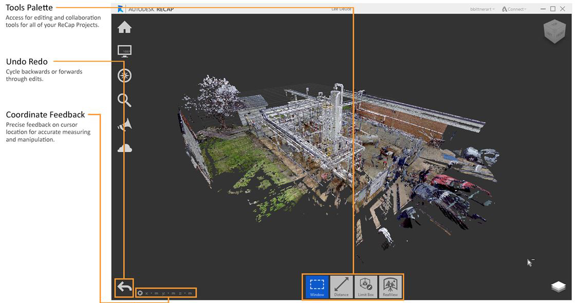 Editing point cloud data into more advanced or focused displays is available in ReCap 360 and Ultimate for desktop. With these tools you can manipulate your point cloud to collaborate and extract data more efficiently across the project.