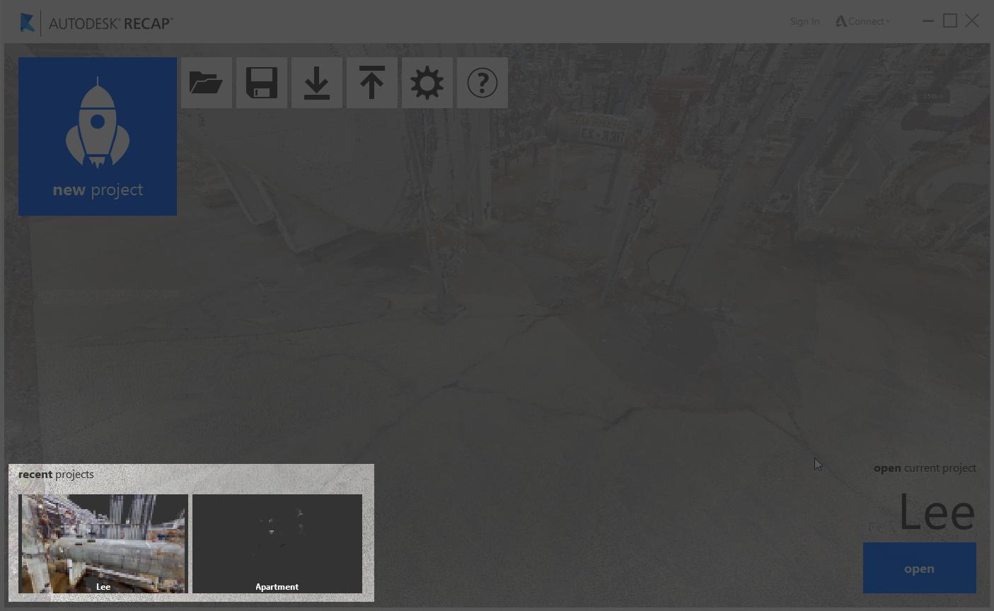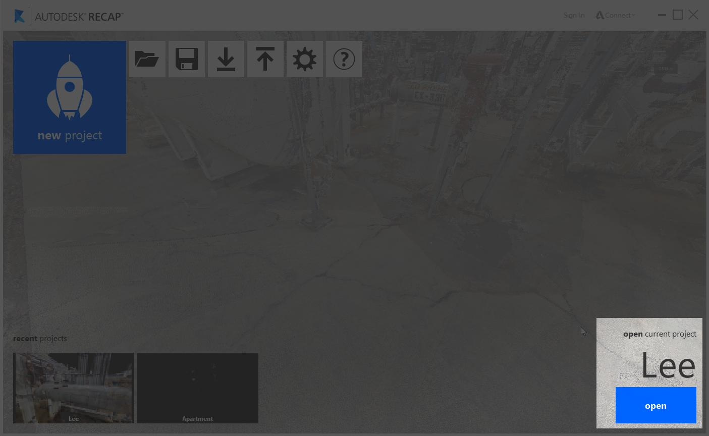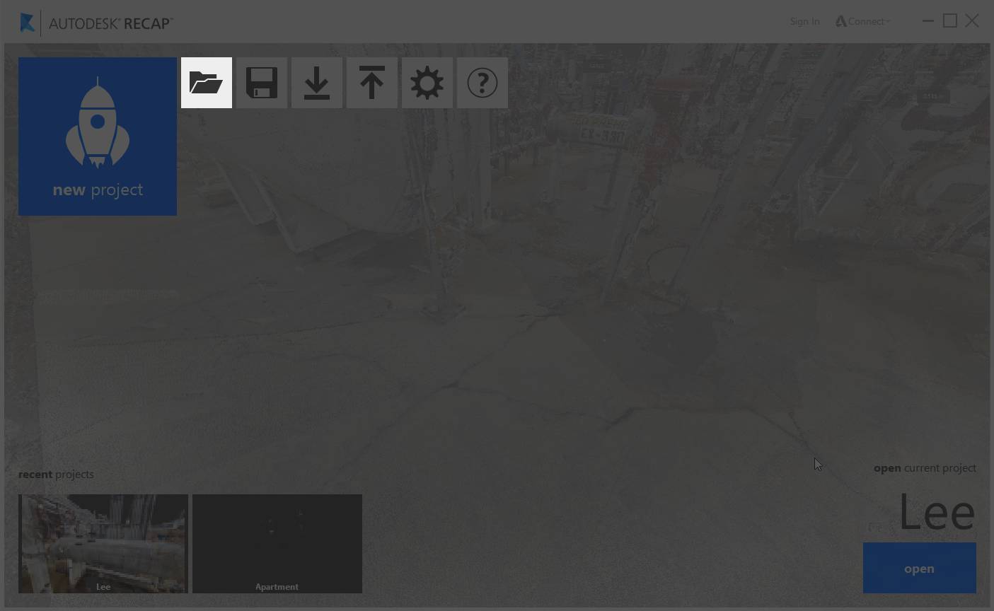 To open an individual scan or package file in ReCap simply use the Open button located here: