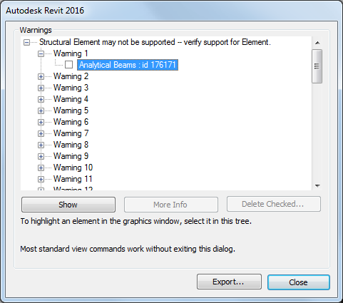 - When prompted that the elective checking criteria in the Structural Settings dialog is being used to evaluate the model, click OK.
