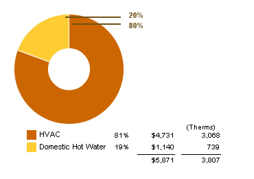 When reviewing an energy analysis in the Results and Compare dialog, this chart compares estimated fuel use for HVAC (heating, ventilation, and air conditioning) and domestic hot water usage.