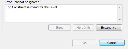 If errors occur during your work, Revit displays dialogs that indicate the problems.