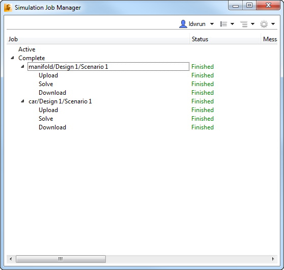 - When the Download stage reaches Finished, the simulation is complete and results are ready for visualization on the local computer.