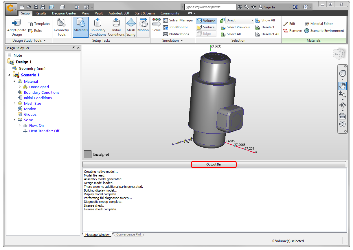 1. To open up some additional screen space, collapse the Output bar by clicking the Output Bar button: