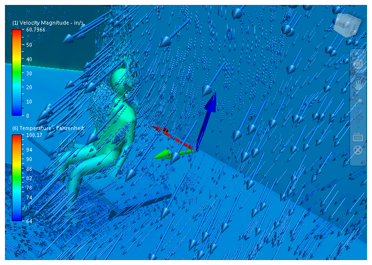 A striking way to visualize the flow inside a device, enclosure, or structure is with the walk-through capability. With this method, you view the results as if you physically inside the model.