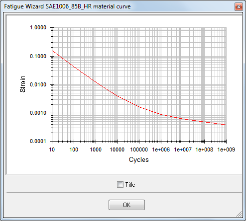 ) button to see the Strain-Life curve. This action is identical regardless of whether the Approximate or Advanced S-N Data option is selected. A typical curve is shown in the following image.