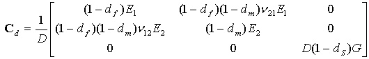 The material behavior is defined as σ = Cdε, where Cd is the elastic matrix that reflects the damage and is calculated as follows: