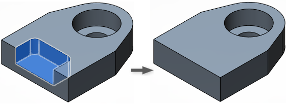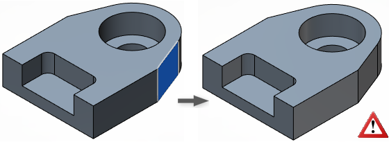 - Does not convert a solid into a quilted surface. If you delete a face on a solid, adjacent faces are extended or modified to heal the model.
