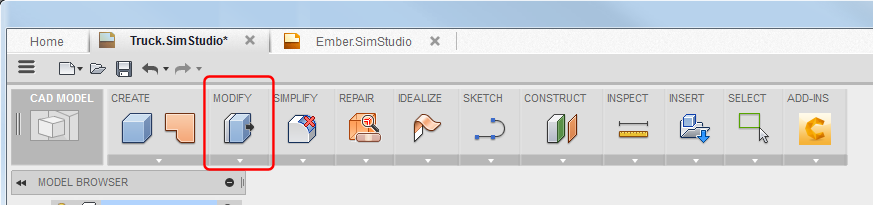 The following first group of commands are located in the MODIFY panel. Scroll-down the page to find other commands located in the CREATE panel.