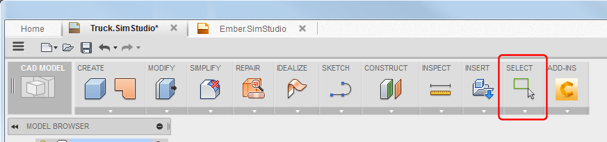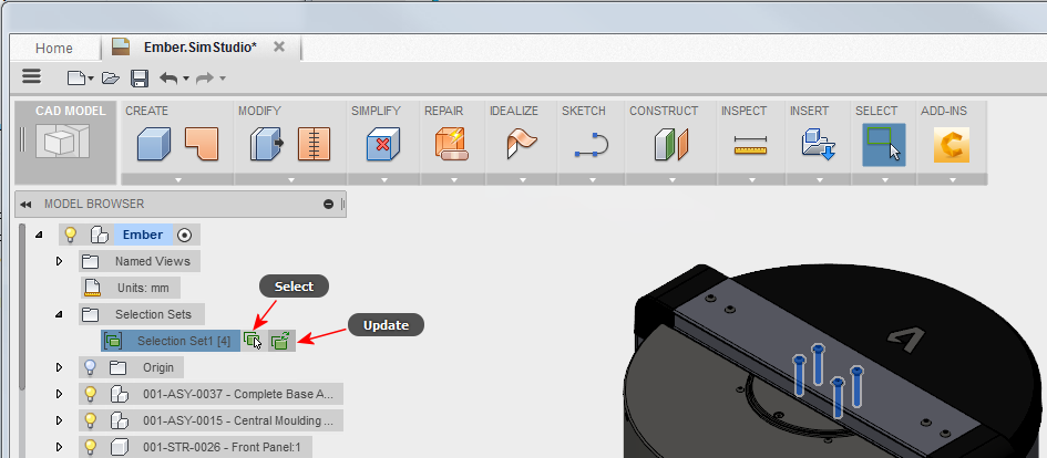 - Select objects in the browser and graphics window, right-click, and select Create Selection Set.