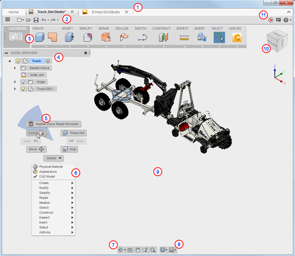 Use the following image and legend as you explore and familiarize yourself with the SimStudio user interface.