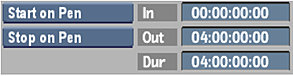 Note: When Stop On Click is selected as the preferred capture stop mode, the out point and the duration timecode fields are updated to reflect the longest possible duration corresponding to the full capacity of a framestore. The capture stops either when you click anywhere on the screen or the timecode indicated is reached, meaning that the framestore is full.