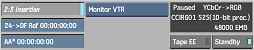 - Enables automatic, real-time 2:3 removal on output and insertion on input. This is only available when the VTR is set to 29.97i or 59.94i.