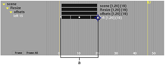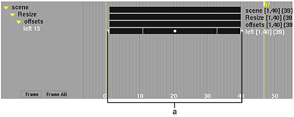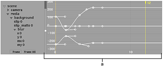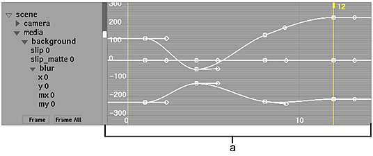 Tip: You can move the handle of a folder to scale all channels in the folder. For example, moving the handle of the Scene folder (the top level folder) causes all the folders and channels in the hierarchy to be scaled by the same amount.