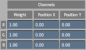 - Displays a value by which pixel colour values are multiplied. The offset value is added to this value to determine the final colour. Editable.