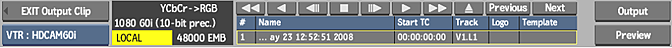 If you are using the large Output menu with an HD clip, the menu automatically switches to the smaller format during clip output, and then switches back when output is complete. This gives you an unobstructed view of the clip during output.