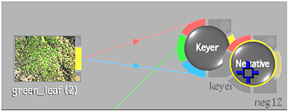 Action: Press and hold Shift while dragging the Negative node to the Keyer node