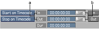 - Using the In and Out timecode fields, set the in and out points for the capture session.