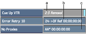 (a) In and Out timecode fields (b) 2:3 In and Out pulldown display